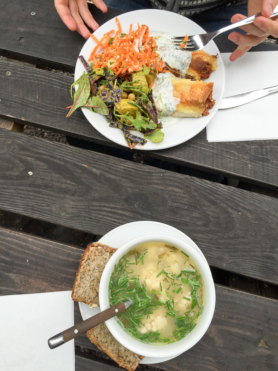 That said, there is a very good reason to visit Christiania, especially if you care for high quality vegan food. There's a wonderful restaurant called morgenstedet, which serves fresh, colorful vegan dishes of the highest quality. We ate outside in the garden and had an awesome meal. While Christiania was sort of disappointing, this restaurant made the trip very worthwhile.